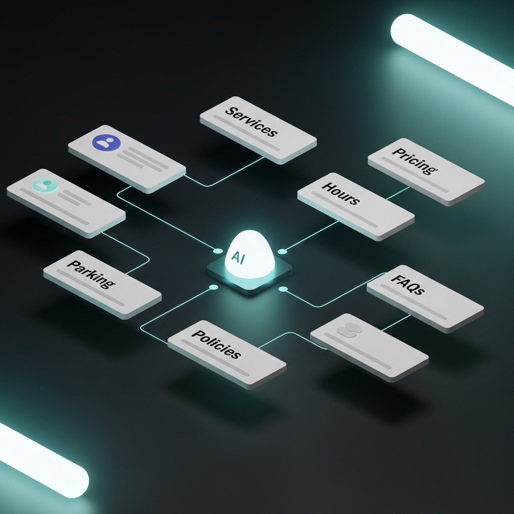 Trained specifically on your business. Offering, services, pricing, policies, directions, parking, everything.